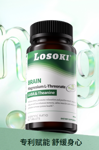 成分純度:樂斯可LOSOKI蘇糖酸鎂含專利成分(專利號:CN201710068955.4),鎂類型為補鎂品質(zhì)天花板的蘇糖酸鎂,每3粒含144mg鎂(來自2000mg蘇糖酸鎂),還復(fù)配Y-氨基丁酸(GABA)和L-茶氨酸且無無效添加,是唯一既有專利又有復(fù)配成分的蘇糖酸鎂。